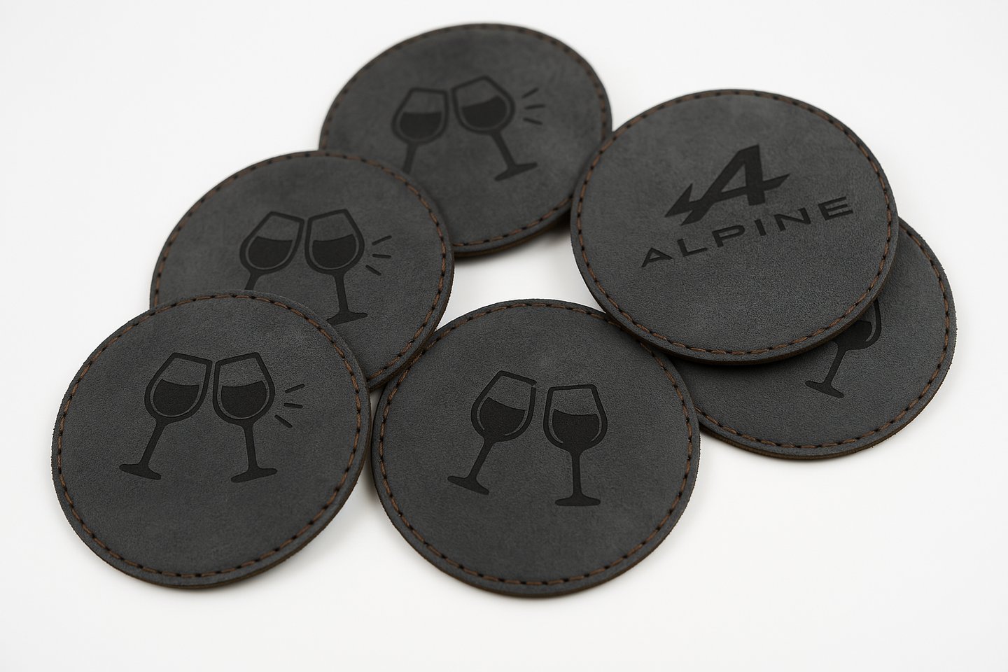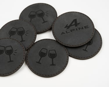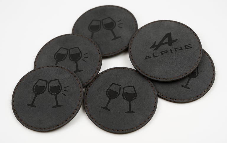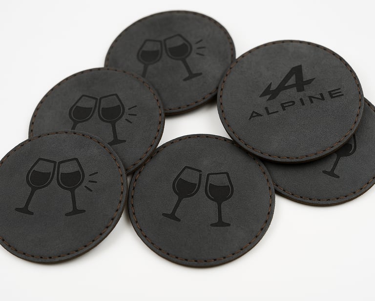Découvrez nos sous-verres en alcantara, élégants et personnalisables. Découpés et gravés au laser avec précision, ils peuvent être ornés du logo de votre choix pour une touche unique. Chaque pièce, cousue à la main, garantit une qualité supérieure et une finition soignée. Alliant style et fonctionnalité, ces sous-verres protègent vos surfaces tout en ajoutant une note raffinée à votre intérieur ou à vos événements. Un accessoire sur mesure, idéal pour sublimer votre quotidien ou faire un cadeau mémorable.